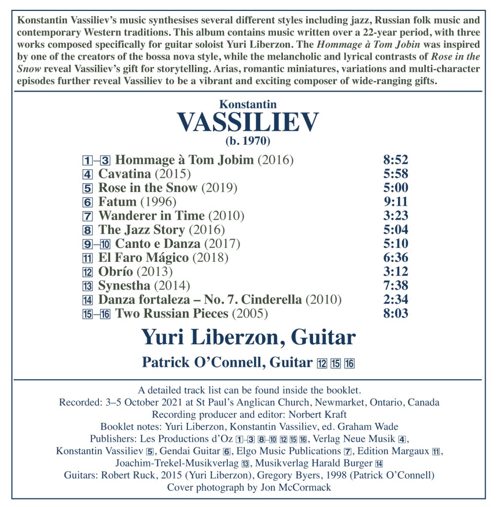 Virtuoso guitarist, Yuri Liberzon, has just released a wonderful recording dedicated to the works of Russian composer Konstantin Vassiliev. On first listen, it is evident that there is a current of very high quality running through this recording – the music is played with the usual high musical standard I have come to expect from Yuri (and on a few tracks by his Duo Equilibrium partner, Patrick O’Connell) and recorded masterfully by Norbert Kraft on the NAXOS label. If you are not familiar with Vassiliev’s compositions for guitar, the selected pieces from the project span over 20 years of stylistically-diverse musical output and states a strong case for including Konstantin Vassiliev compositions in the modern guitar compositional canon.